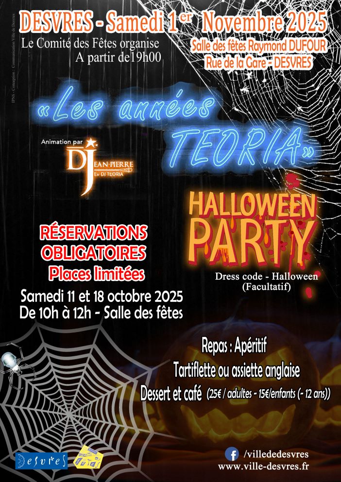 Pour fêter Halloween comme il se doit, le Comité des Fêtes vous donne rendez-vous le samedi 1er novembre à la salle des fêtes pour sa traditionnelle soirée « Les années Téoria », édition spéciale Halloween ! 🕷🕸