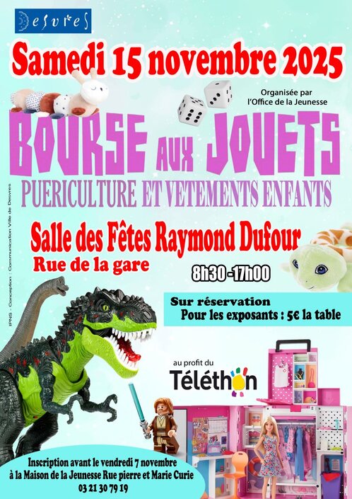 Comme chaque année, l’Office de la Jeunesse organisera sa bourse aux jouets, aux vêtements enfants et au matériel de puériculture le samedi 15 novembre prochain à la salle des fêtes R.Dufour, rue de la Gare. Et tout cela au profit du (…)